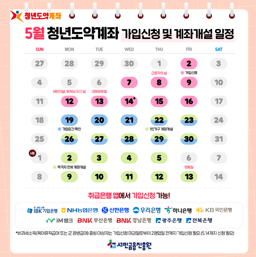 - 신청 전에 '청년도약계좌 미리보기' (정부24 또는 국세청 홈택스) 통해 본인의 가입 가능 여부 확인 가능